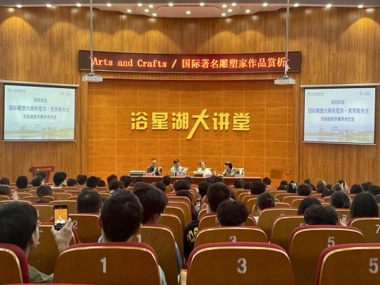 2日上午,丹尼尔·克劳斯教授在校浴星湖大讲堂为学院师生代表作了一场精彩绝伦、趣味横生的演讲。讲座以《Arts and Crafts/国际著名雕塑家作品赏析》为题,通过讲解、比较和探讨数位国际艺术大师的代表作品,向师生们介绍了世界美术与雕塑工艺的发展历史和不同时期作品的典型特征,旨在让师生们在了解美术与雕塑发展的基础上,加深对艺术造型、色彩、装饰等方面的理解,提高自身的艺术修养、鉴赏水平及创作能力等综合素质。丹尼尔·克劳斯教授因在中国工作生活多年,中文流利,幽默诙谐的语言多次使全场响起阵阵掌声,同学们也纷纷提问互动,整场讲座气氛轻松融洽。