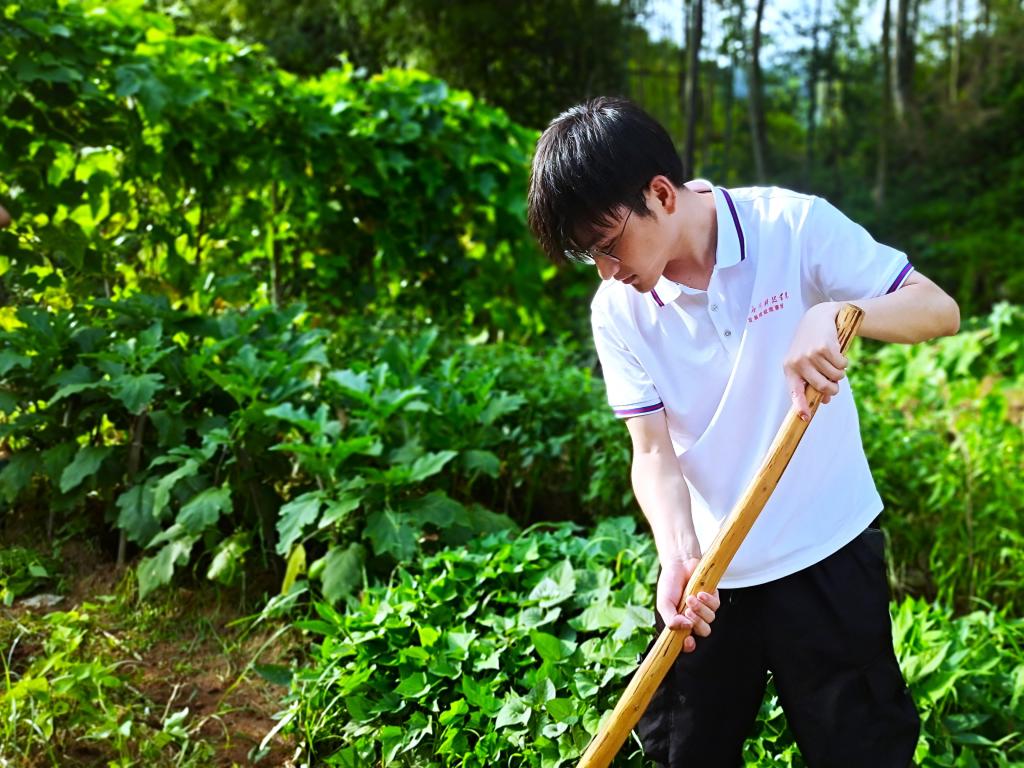 “和队员们一起在地里除草、锄地,感受一份耕耘、一份收获的踏实和满足,蚊虫很多,我还被咬了一身的包,劳动虽然辛苦,但却能带来喜悦感与自豪感,希望今后能继续参加此类活动”2021级机器人工程专业王致成说。