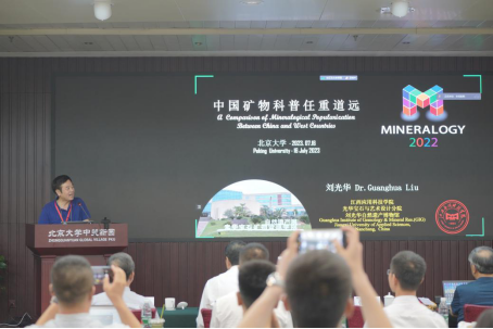 副校长刘光华教授代表学校在会上作了“中国矿物科普任重道远”的主题报告。他首先评述了国际矿物科普的悠久历史和先进理念;随后介绍了我们通过举办国际会议、出版科普书籍、组织矿物博览会和科普讲座论坛、建立矿物博物馆与科普馆等方式,为我国矿物学科普工作做出的贡献;最后倡导开展大众矿物科学普及教育,让更多的人了解和热爱矿物科学。