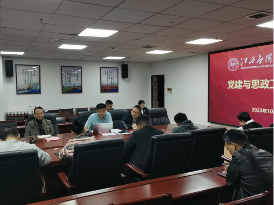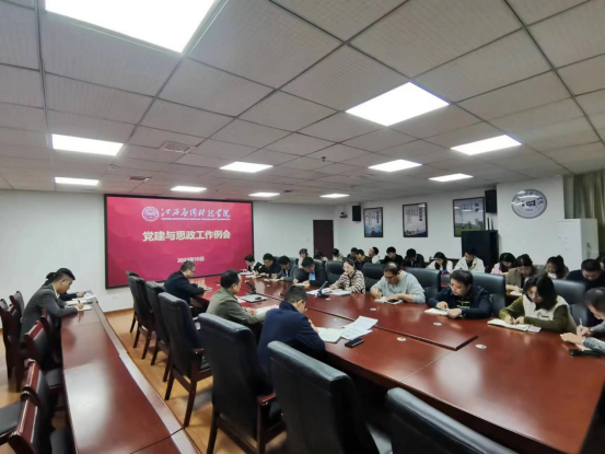 10月20日,学校在综合楼六楼会议室召开党建与思政工作例会。校党委书记、政府督导专员彭迪云出席并讲话。党委委员、纪委书记江星,党委委员、宣传部部长何文学,党委委员、学工处处长黎晓明出席会议。会议由江星主持。