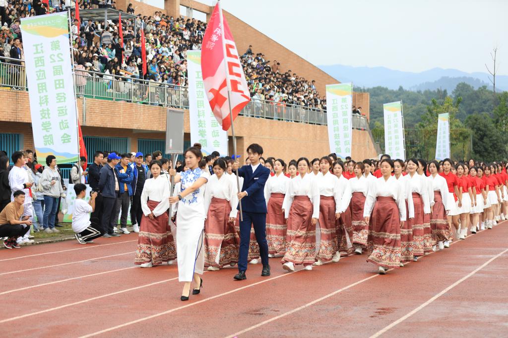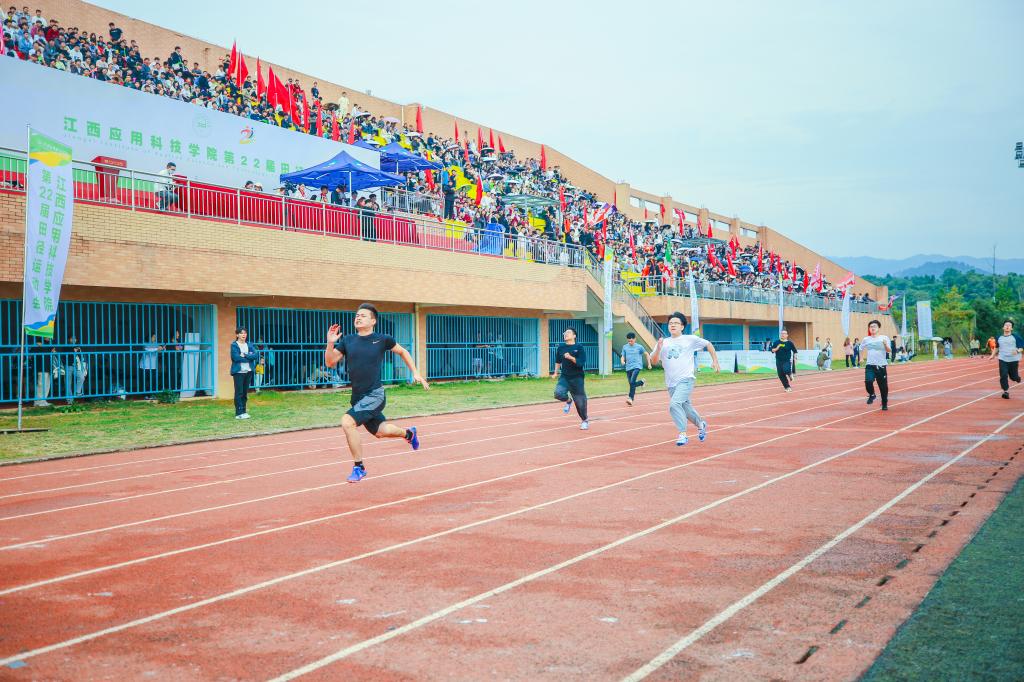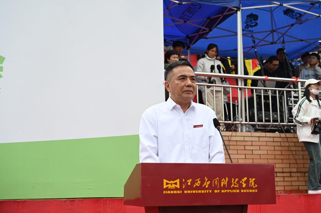 江作军在开幕式上讲话。他指出,一年一度的校田径运动会是为了贯彻落实习近平总书记关于教育的重要论述和中共中央、国务院《关于全面加强和改进新时代学校体育工作的意见》等文件精神的综合体现,也是对必赢官网体育工作、师生精神风貌的一次检阅。通过全体师生的共同努力,近五年来,学校体育教学水平、竞技水平、体育教学改革、群众性体育活动都取得了明显进步。学校在各级各类比赛中取得了丰硕成果,多次获得江西省大学生篮球比赛冠军;获得江西省大学生足球比赛获五连冠;获得江西省大学生运动会田径比赛获十多个单项冠军,三个单项破省纪录;获得江西省大学生国际标准舞冠军3项;在2022年江西省第十六届运动会比赛中获得17金11银11铜的好成绩,位列同类院校第一名。这些成绩的取得离不开学校广泛的群众性体育与竞技体育活动的开展。