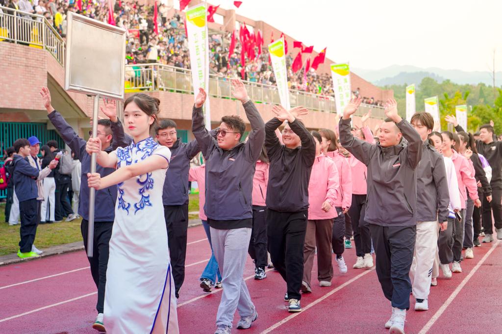 开幕式上,各学院方阵的主席台前三分钟表演推陈出新、新颖有趣,既蕴含了各学院的鲜明特色,又满怀应科学子的独特朝气。来自人工智能学院、软件与区块链学院、智能制造工程学院、建筑工程学院、国际商务学院、财经学院、现代管理学院、光华宝石与艺术设计学院、音乐学院、教育学院、体育学院、机关共十二支代表队各出新意、各展风采。他们青春活力、绚丽多姿的入场仪式,体现了多样性和创造性,充满了想象力和凝聚力,诉说着对这场体育盛会的期待与热爱。