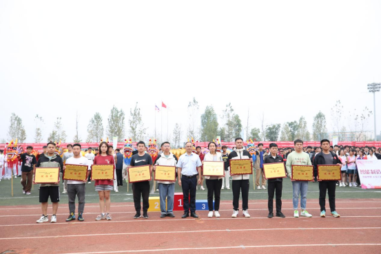 汗水见证奇迹,拼搏成就梦想。10月27日下午,历时两天的第二十二届校运动会在田径场圆满结束。校长江作军,常务副校长干甜,纪委书记江星,副校长房小珍、张敏、谢远健出席闭幕式并为获奖团体和个人颁奖。各职能部门、各学院相关人员及全体运动员参加闭幕式,闭幕式由谢远健主持。