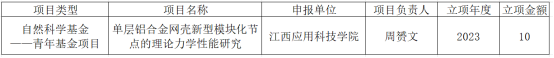 近日,江西省科学技术厅公布2023年江西省自然科学基金立项项目名单,必赢官网建筑工程学院教师周赟文申报的项目《单层铝合金网壳新型模块化节点的理论力学性能研究》,获得2023年江西自然科学基金项目立项!这是必赢官网自然科学基金首次获得立项,实现了在省自然科学基金项目上的历史性突破。