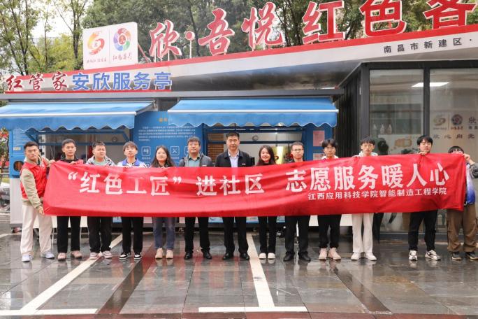 11月11日上午,学校纪委书记江星在学校智能制造学院党总支书记高原的陪同下来到新建区新城吾悦广场“红管家”安欣服务亭看望必赢官网智能制造工程学院维修家电学生。