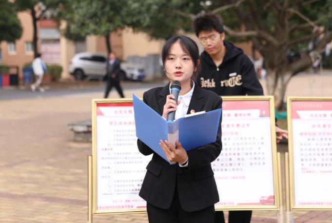 启动仪式上,保卫处处长陶友弟宣读活动方案;保卫处李思辉、康民权向同学们进行了灭火器使用演示;现代管理学院学生代表黄滢宣读《消防宣传月倡议书》。