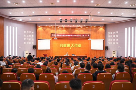 为持续深入学习宣传贯彻习近平总书记考察江西重要讲话精神,11月17日下午,题为《走在前 勇争先 善作为的科学指南—习近平总书记考察江西重要讲话精神解读》专题报告会暨党委理论学习中心组学习(扩大)会在学校浴星湖大讲堂举行。江西省社科院原院长、二级研究员,辰林教育集团首席战略官汪玉奇作专题报告。全体在家校领导,副科级以上(含副科级)干部,全体专(兼)职辅导员,部分学生代表参加学习,报告会由校党委书记彭迪云主持。