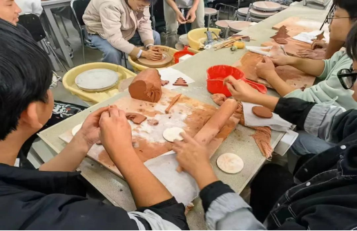 光华宝石与艺术设计学院于12月12日起在产学研中心102陶泥制作工作室开展了为期三天的陶泥制作劳动教育。同学们在指导老师讲授完陶泥制作的基本方法和流程后,依次割取泥坯开始操作。 托盘旋转,陶泥柔软,参与陶泥制作劳动课的学生满手泥浆。泥坯放在转盘中央,同学进行着各种“成型”操作,拉、压、揉、提,同学们开动脑筋不断改进操作方法,一边蘸水一边拉坯,让坯体在旋转中变换形状。转盘上的作品形态各异,有的身形高挑,有的体大敦实,有的碗口敞开,有的收束含蓄……