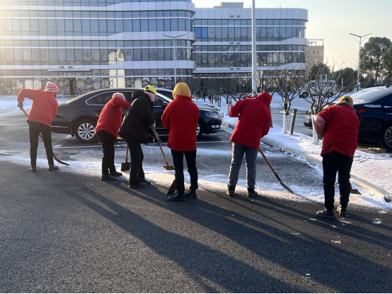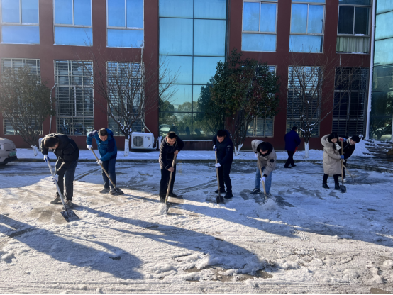 在江西省教育厅发布寒潮天气防范预警后,学校总务处“以雪为令”积极部署,1月21日提前准备防滑草垫、工业盐和扫雪铲冰工具设备,对校园主干路、师生必经路的过道、台阶进行防滑处理。1月22至23日为避免道路结冰、积雪等情况,总务处全体行政、工勤、物业人员对校园主干路开展精细化扫雪、铲冰工作。
