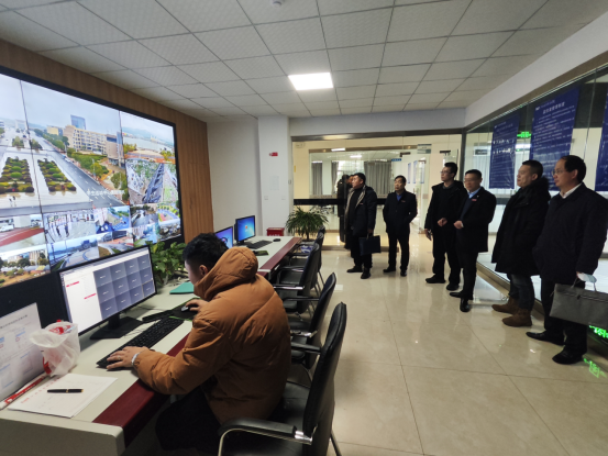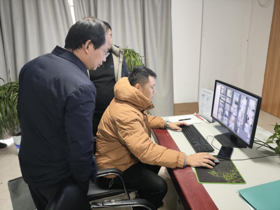 指导组一行在学校视频监控室