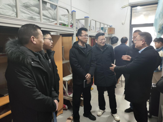 指导组一行在学生宿舍检查