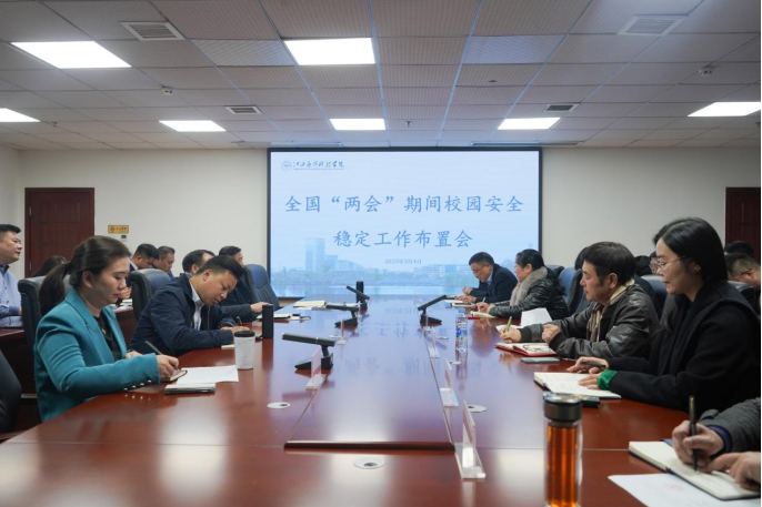 3月4日上午,学校在综合楼六楼召开全国“两会”期间校园安全稳定工作布置会,学校党委书记彭迪云,执行董事长王立,常务副校长干甜,党委副书记江星,副校长刘光华、胥懋云、房小珍、张敏、谢远键出席会议,各二级学院党总支书记,各职能部门负责人参加会议。