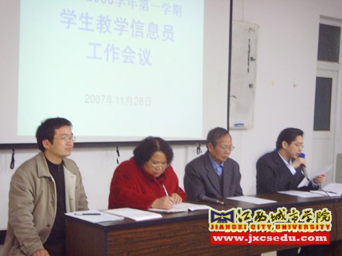 会议首先由教务处副处长郭伟民同志介绍了学校实施学生教学信息员制度的目的和意义以及学生教学信息员的作用,同时传达了《江西城市职业学院学生教学信息员制度实施办法(试行)》文件,希望全体信息员按照教学信息员制度实施办法的要求积极开展工作。学校督导室邹兵主任从学校教学督导与教学监控的角度强调了教学信息员工作的重要性,指出这种举措是进一步完善学校教学质量保障体系。