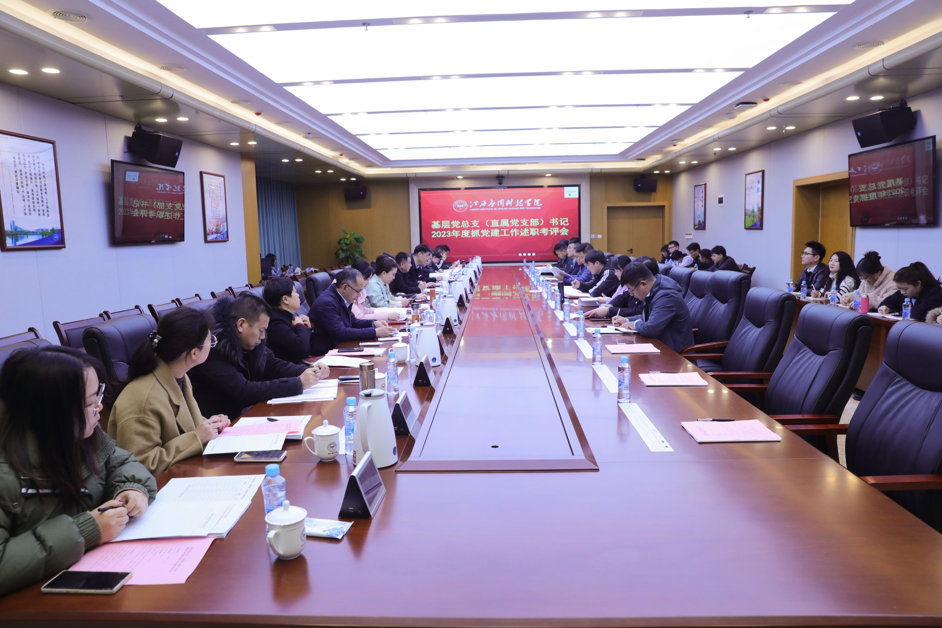 为进一步强化基层党总支(直属党支部)书记履职意识,持续推进基层党总支(直属党支部)党建各项工作落实落地,总结2023年履职情况,3月7日下午,学校在三元大厦一楼会议室开展基层党总支(直属党支部)书记2023年度抓党建工作述职考评会。学校党委书记彭迪云,党委副书记、董事长黄玉林,党委副书记江星,党委委员、常务副校长干甜,党委委员、副校长胥懋云、张敏、谢远健出席会议,会议由江星主持。