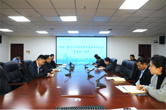 王立在会上传达了《教育厅2024年高职单招考前工作布置会》精神。