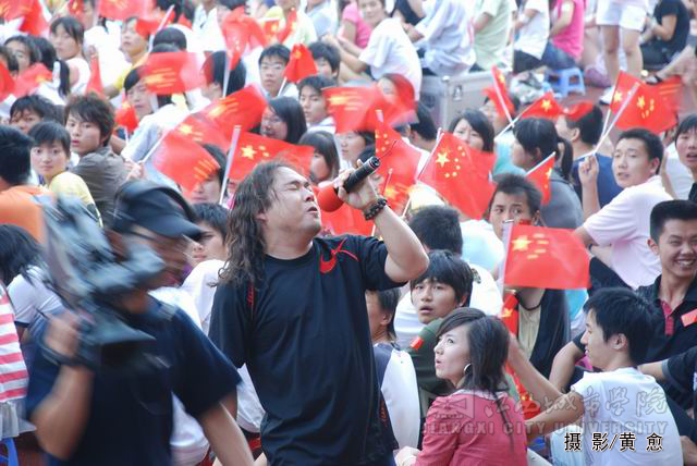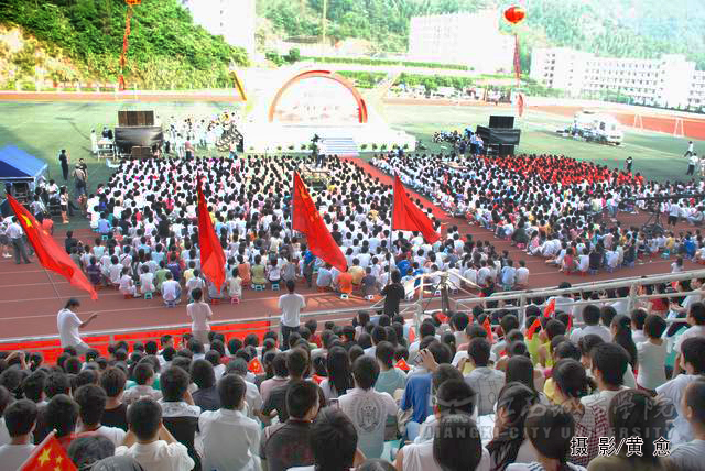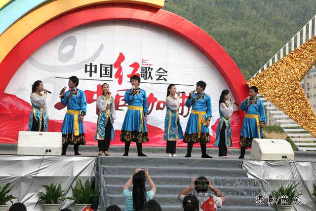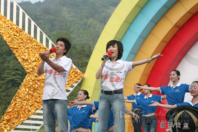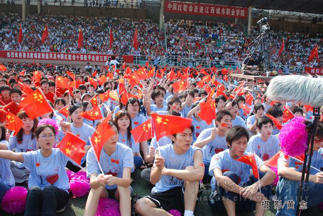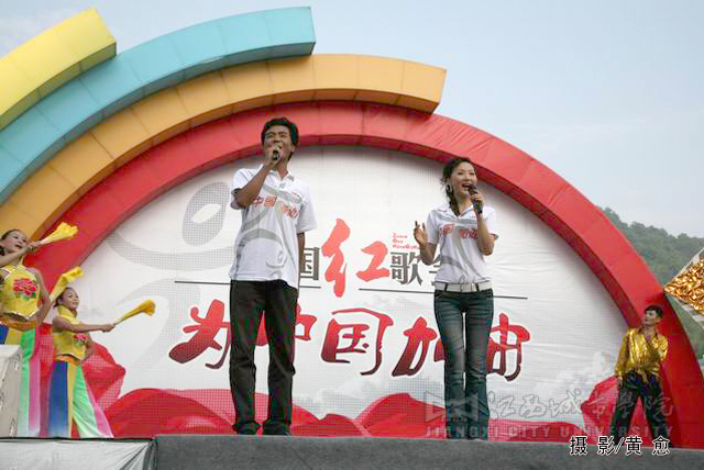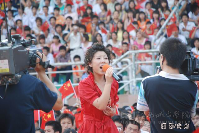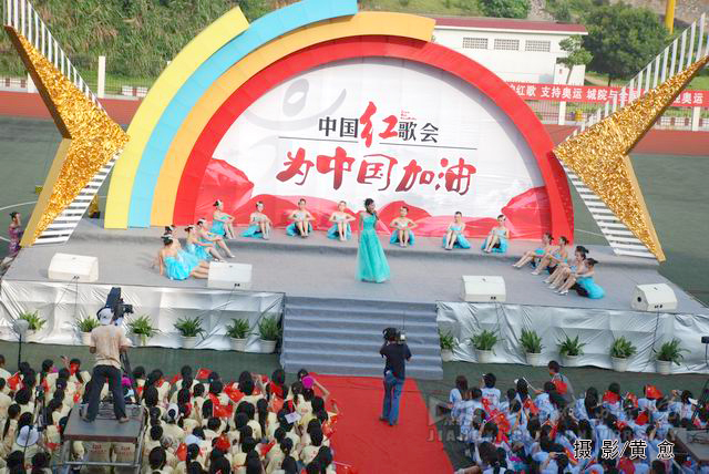 合唱《为中国加油》拉开了整场红歌会的序幕,随后,中国红歌会十强选手一一登台献唱,激情的演唱点燃了观众的热情,台下观众纷纷挥舞起国旗。著名女高音歌唱家耿莲凤带来的歌曲《祖国一片新面貌》、《在北京的金山上》充满了激情,感染了现场的观众;《台湾同胞》、《七子之歌》、《我的中国心》、《东方之珠》等饱含深情的经典红歌,唱出了亿万人民期待祖国统一和祖国人民心连心的主旨,并搏得了场下观众的阵阵掌声;《月亮女儿》、《娜鲁湾情歌》、《阿瓦尔古丽》、《逛新城》等曲目别有一番民族风情,使观众领略到了异地风采;欢快、活跃的《山丹丹花开红艳艳》和《康定情歌》在演唱中还与现场的同学们进行了互动。一首首饱含深情的红歌,将气氛推向了高潮。必赢官网学生表演的舞蹈《年年有余》、歌伴舞《蒙古人》等尽显必赢官网学子青春的活力与风采,整场歌会精彩节目层出不穷。同时,必赢官网各分院学生代表还组成四个方队,进行拉歌表演,并用手语这种特别的方式表达对祖国的热爱。此外,由红歌选手与必赢官网学生联袂演绎的歌伴舞《感恩的心》表达了红歌选手以及必赢官网学子对四川人民重建家园的期待以及对祖国深切的祝福。