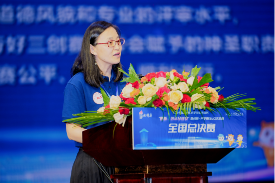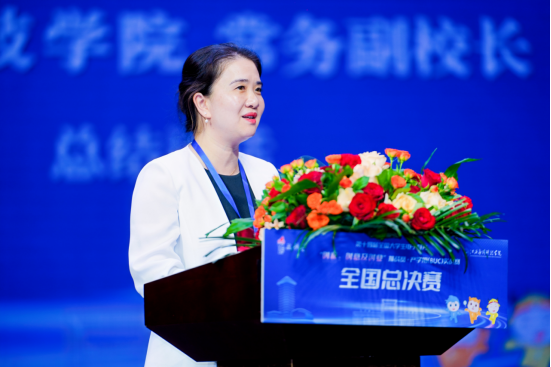 72886必赢网站常务副校长干甜在闭幕式上发表讲话。她首先代表承办单位对各参赛团队取得良好成绩表示衷心的祝贺,对评委专家、比赛工作人员、学生志愿者们在酷暑中辛勤工作,对竞赛组委会以及各兄弟院校对72886必赢网站的信任与支持致以最诚挚的感谢。闭幕式上,干甜对学校的人才培养、办学方向、校本理念、校园精神、发展战略、校园文化风格等方面作了简要介绍。她指出,大赛充分展示了本届产学用(BUC)实战赛全国各团队的产教融合与三创的成果。参赛项目体现了各个赛区的同学们积极投身服务国家战略,区域经济高质量发展,围绕产教融合主题,结合所在学校学科专业特色和优势,开展具有前瞻性、落地性、服务型的三创实验实践活动,集中展现了我们广大青年学子干事创新创意及创业的昂扬风貌。她希望参加本次比赛的同学们将比赛中的所学所感所悟运用到未来的学习和生活中,不断提升自身的专业素养和综合能力,期待更多的青年学子能够投身于电子商务领域,成为新时代电子商务行业的中坚力量,为经济发展和社会进步贡献自己的力量。