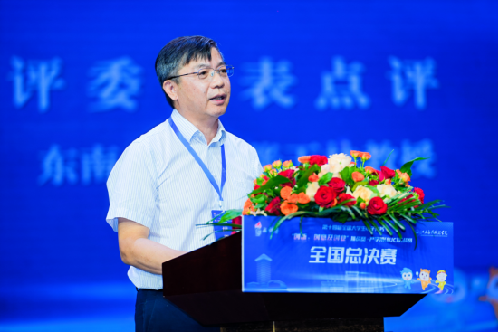 东南大学张玉林教授代表第十四届三创赛全国总决赛评委在闭幕式上为此次大赛做出比赛点评。他指出,参加本次总决赛的团队大多都能够强化创新意识、引导创意思维、锻炼创业能力、倡导团队精神以及践行学科引领、知行合一、敢想敢干、勇立潮头的竞赛宗旨,都出色地完成了此次比赛。