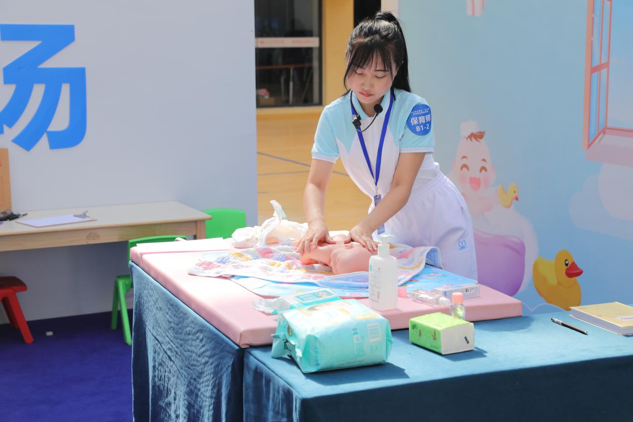 “现在房间温度为26℃,宝宝不会着凉的,我们可以为宝宝更换纸尿裤……”在职工组育婴员赛道的实操现场,一名身着蓝色短袖的育婴员选手抱着怀中的“婴儿”轻声地说。据悉,此次竞赛设置了保育师、育婴员两个赛道,每个赛道均设个人赛和团队赛。竞赛内容包括专业知识、操作技能和综合能力,通过模拟真实工作场景、设置贴近实际的挑战任务,充分考查选手的专业技能。