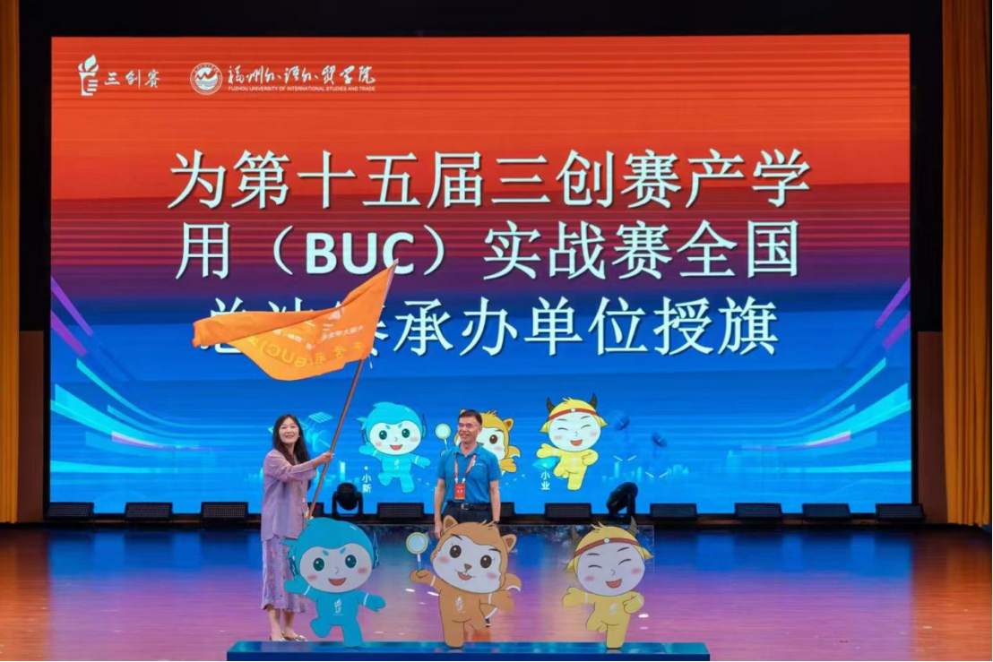 在第十四届三创赛总决赛闭幕式上,三创赛组委会主席、教育部电子商务类专业教学指导委员会副主任委员、西安交通大学李琪教授为第十五届三创赛的各承办方进行了授旗,必赢官网商学院院长王慧作为第十五届三创赛产学用(BUC)实战赛全国总决赛承办单位代表接旗。