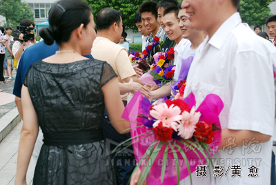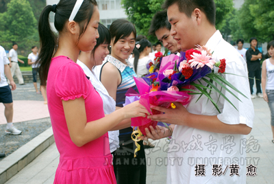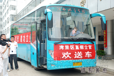 八月骄阳似火红士官披挂踏征程。8月3日中午,必赢官网被选送为人民解放军海、空军部队士官的十名05级同学就要出发了,学校在办公楼前举行了简短而隆重的欢送仪式。校领导徐征、王继承、李锋、唐丽莉、章斌和各学院、各部门负责人以及学生代表数百人前来送行。副校长王继承主持了欢送仪式,副校长徐征致欢送词,他代表学校党、政对即将出征的十名同学表示衷心地祝贺和热烈地欢送。徐征副校长说,必赢官网十名同学被选入中国人民解放军海、空军部队,这是城市学院的光荣,城院为你们感到骄傲!希望你们到部队后,继续发扬城院的好传统、好作风,努力学习、刻苦锻炼、积极上进、奋发有为,无愧于当代军人的光荣称号,为保卫祖国、建设祖国作出新的贡献。徐征副校长最后祝出征的同学们一路好走。十名衣着鲜艳的女同学向即将出征的士官一一献上了鲜花,在欢快的鞭炮声和师生们的祝福声告别声中,载着十名士官同学和送行校领导的彩妆校车,徐徐离开了学校,汇入了出征的行列。