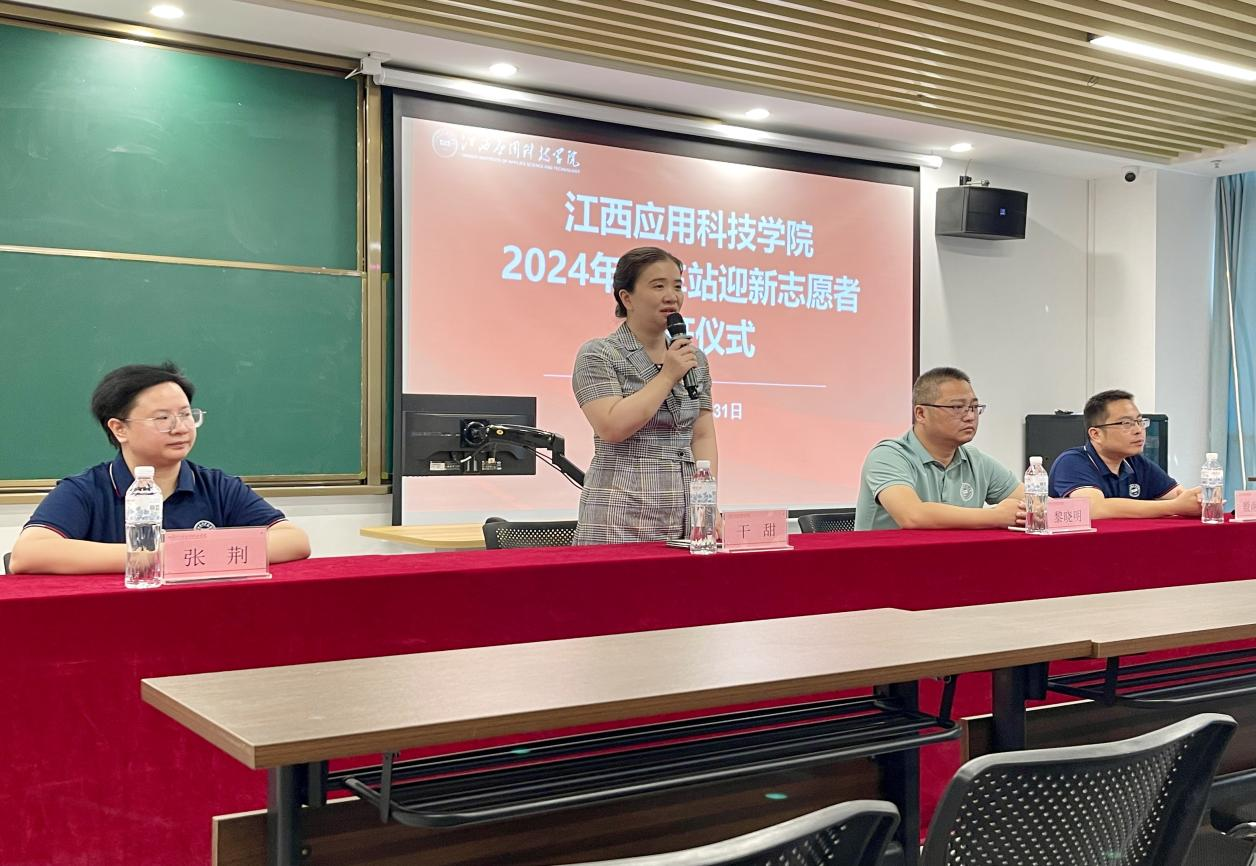 学生代表潘薪颐作为志愿者代表发言。她表示,将不负学校重托,以高度的责任感和使命感投入到迎新工作中,用实际行动践行“奉献、友爱、互助、进步”的志愿精神,为新生们提供周到、细致的服务,让他们感受到家的温暖。