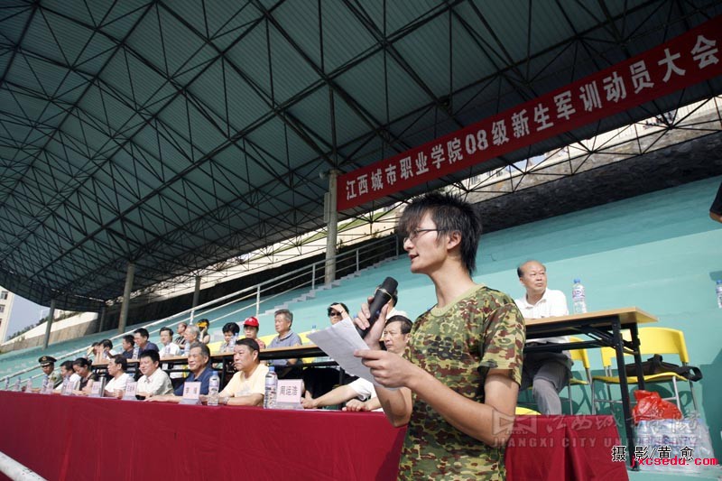 在动员大会上,武警一支队代表李勇也发表了讲话,他以高度负责的态度向全场的新生表示:教官们会端正思想态度,认真搞好军训,为同学们树立榜样;积极配合学校领导的工作,遵守各项制度,以严谨的态度、以人为本的原则,高标准、严要求地做好工作,强化安全意识,确保军训紧张而有序地进行。新生杜楠楠也在会上代表全体参训学生向领导和教官们表示了决心。他说,在军训期间,将虚心向教官学习,尊重教官,服从安排和指挥,树立良好的组织纪律观念,发扬艰苦奋斗的拼搏精神。努力学习科学文化知识,在城院的土地上谱写最绚丽的篇章!