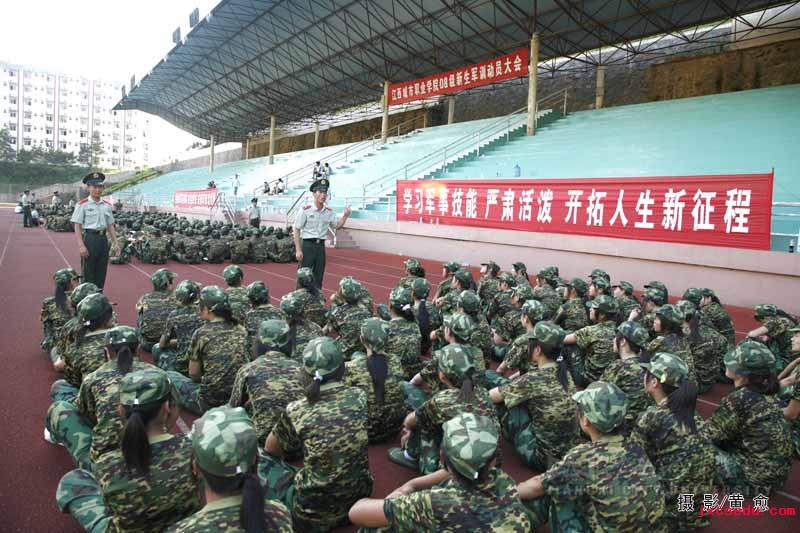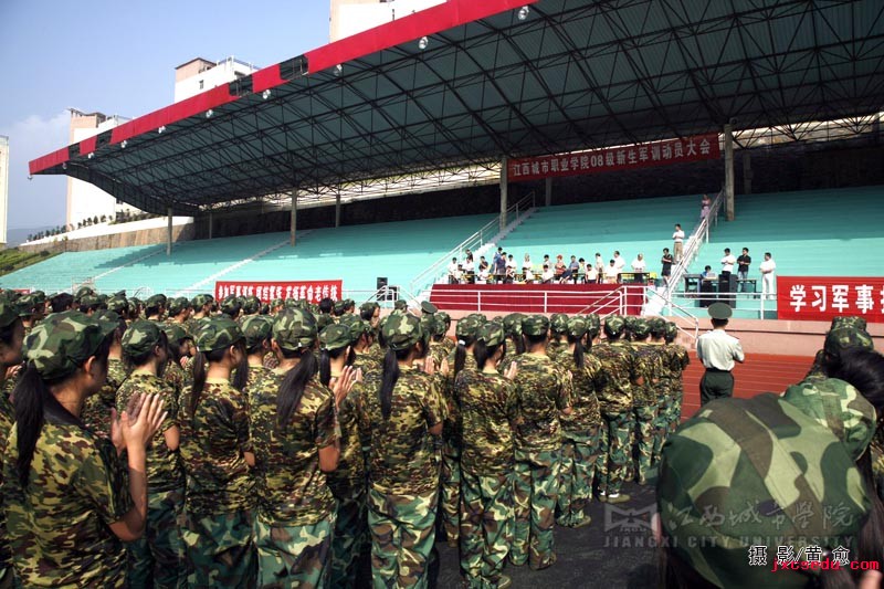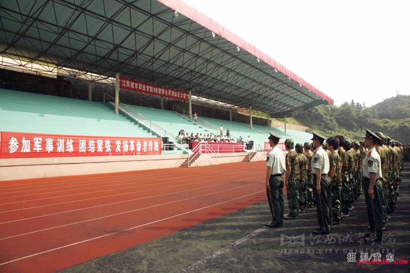新闻中心记者杨姗报道:08级新生的到来,为城市学院注入了新的活力。为更好地贯彻《普通高校学生军事训练大纲》要求,必赢官网于8月5日上午8:30在运动场隆重举行军训动员大会。运动场上,军训标语高挂,音乐声声雄壮,近千名新生衣着崭新的“橄榄绿”,精神抖擞地列队站立,期待着新学期开始的第一课。