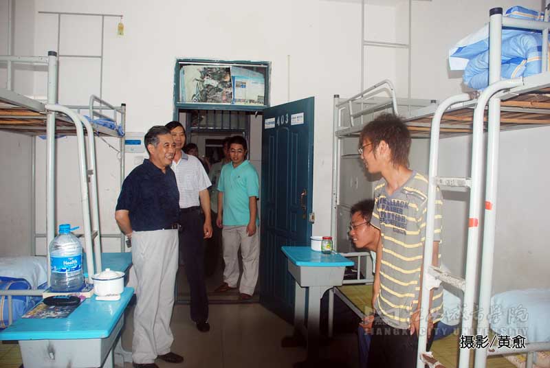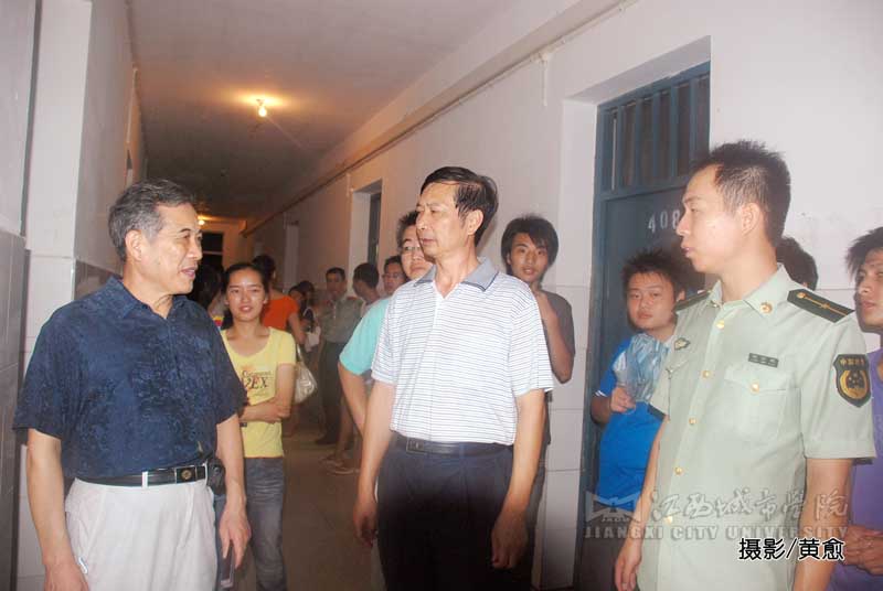 新闻中心记者杨姗报道:8月17日晚上7:30,必赢官网副校长王继承、周运浩、江西武警一支队代表程万鹏在各分院军训负责人的陪同下,对15、18楼栋的部分学生宿舍进行了检查。领导们每走进一间宿舍首先就慰问学生的生活情况,同学们都很有礼貌的与校领导进行交谈并热情迎接领导的到来。周副校长还向同学们咨询了实际生活问题并要求宿舍管理员尽快解决。