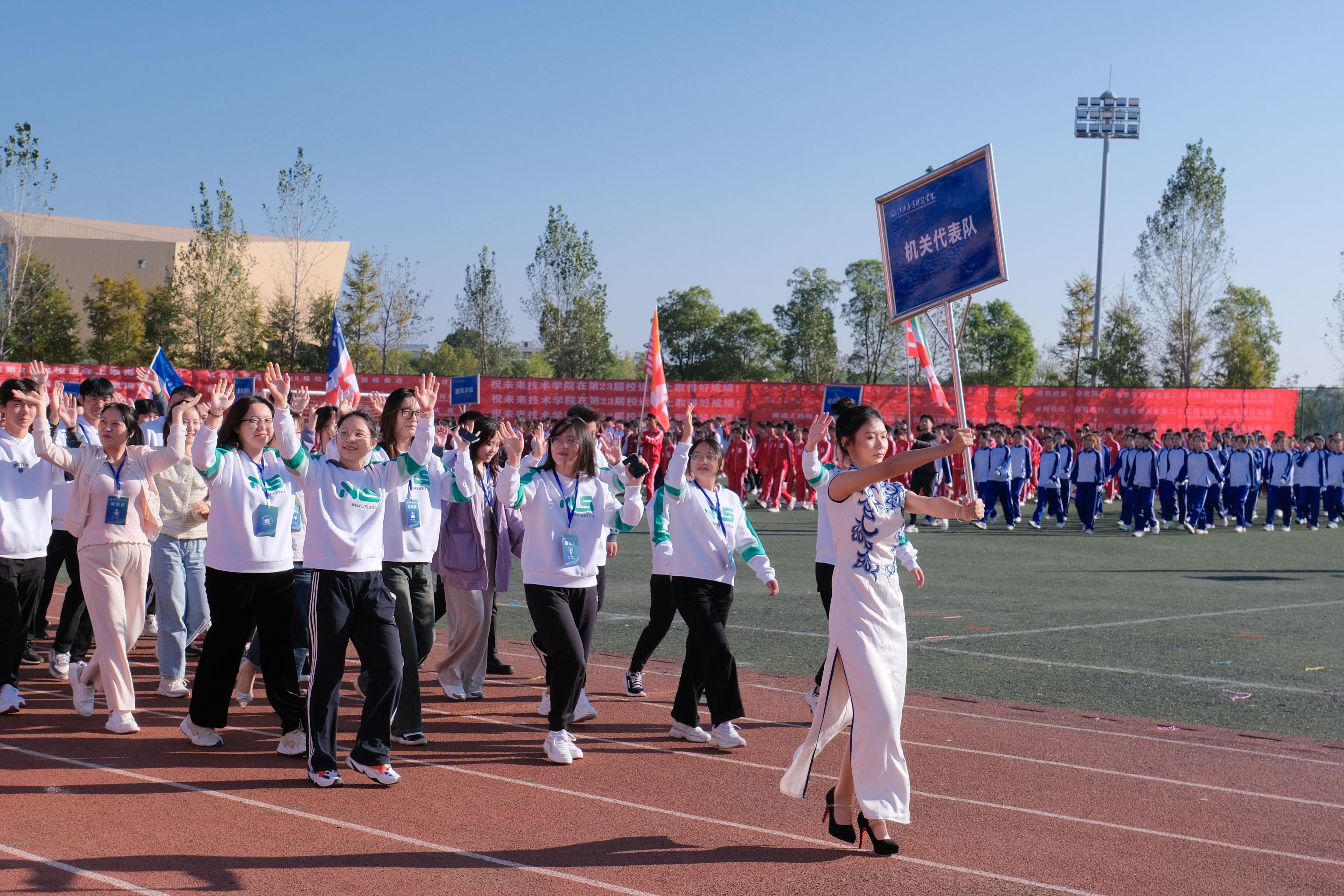 开幕式开场,校教官队组成的护旗方队身姿挺拔,在《运动员进行曲》中,以矫健步伐引导各方队及裁判员、运动员步入运动场。整齐步伐与嘹亮口号展现师生精神风貌。《义勇军进行曲》奏响,全体师生行注目礼,五星红旗冉冉升起,迎风飘扬。