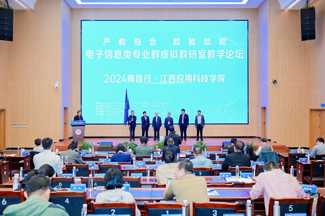 论坛最后,还举行了下一届虚拟教研室会议承办方授旗仪式。此次论坛共吸引来自全国100余所高校的电子信息相关专业院校领导、专业负责人及骨干教师等300余人参会研讨。论坛的成功举办为全国高校从事一线教学的专家学者搭建了互相学习与交流的平台,推进了优质数字教育资源共享,尤其为提升南昌高校电子信息类专业本科人才培养质量进行了有益探索。