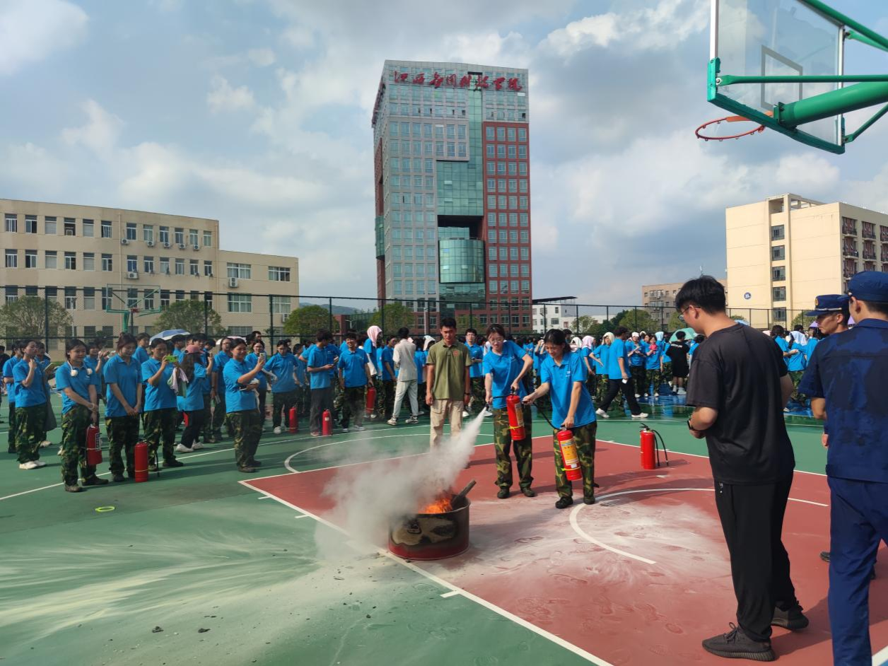 9月13日,学校保卫处联合南昌市新建区璜溪消防救援中队在学生宿舍楼27栋(五食堂旁广场侧面)开展2024级新生消防安全培训暨火灾疏散逃生演练活动。学校副校长张敏出席,各学院党总支书记(副)、学工科长(副)、各学院师生代表、图书与档案信息中心教师代表、产教融合与实验实训中心教师代表、食堂、物业公司楼栋保洁人员代表、全体宿舍管理员及生活老师、安保人员参加活动。活动由保卫处副处长宋晓卫主持并负责现场指挥。