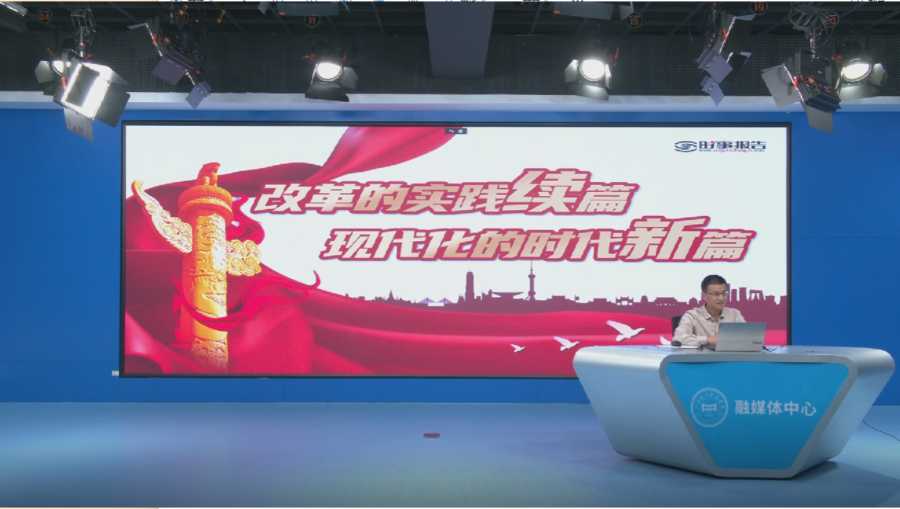 10月22日下午,党委书记贺一松在融媒体中心为必赢官网第十六期“青马工程”大学生骨干培训班学生上了一堂题为《改革的实践续章 现代化的时代新篇》的精彩思政课。