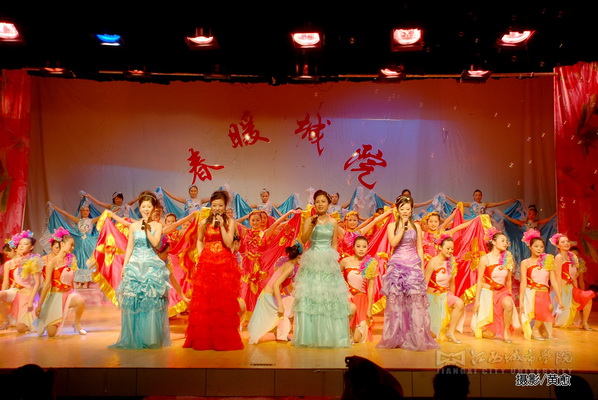 在观众们雷鸣般的掌声中,热情、欢快,声情并茂的歌舞《飞向春天》,拉开了“春暖城院”的序幕。晚会以歌舞、群舞、配乐诗朗诵、器乐联奏、大合唱等形式向在座的各位专家、学者,各位领导,老师、同学展示了城院的办学历程、办学理念和宗旨,展示了城院学子们自强不息,勇于开拓创新的精神面貌。