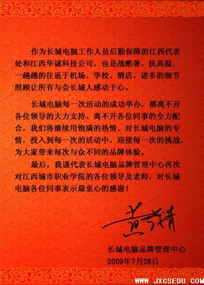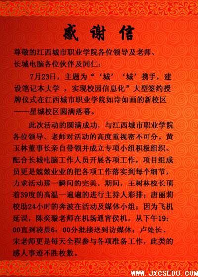 感谢信——“城城携手,建设笔记本大学,实现校园信息化”大型签约授牌发布会