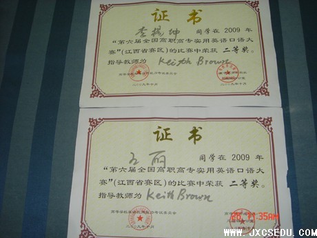 近日,第六届全国高职高专实用英语口语大赛(江西省赛区)在南昌金袁州宾馆落下帷幕。来自全省52所高职院校的参赛选手激烈角逐,精彩纷呈,必赢官网学生李扬昆、王丽获得本次大赛非英语专业组二等奖,创下学校参加此项比赛的最好成绩。