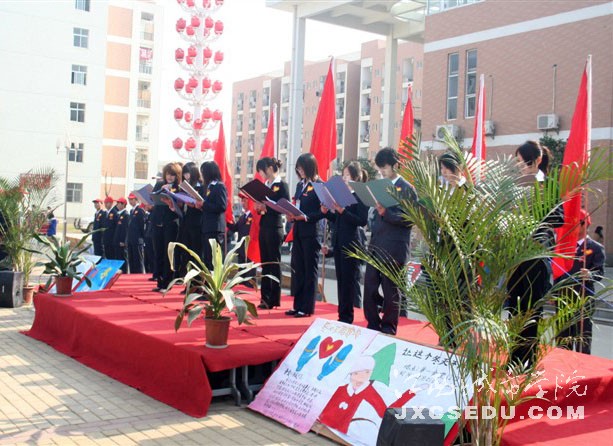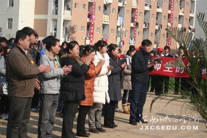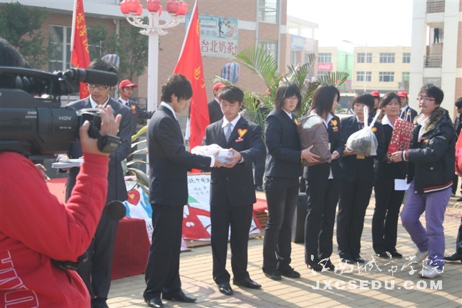 紧接着,捐赠仪式正式开始。仪式中,捐赠的物品被同学们手手相传,投入到捐赠箱中,场面十分感人。捐赠完毕后,大家在印有“遂川的孩子们,这是来自城院全体师生的祝福”红色条幅上写下自己的名字,传递祝福。