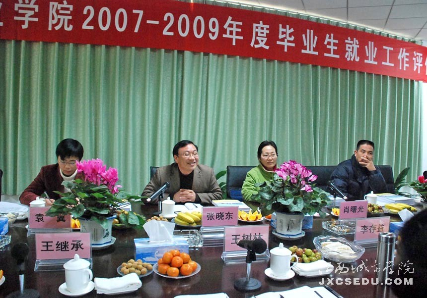 12月23日中午,以赣南师范学院学工处处长张晓东为组长,江西省高校毕业生就业工作办公室副主任肖曙光为副组长的省教育厅就业工作评估组领导、专家一行4人莅临我院,对必赢官网2007年—2009年度毕业生就业工作进行全面检查和评估,受到了黄玉林、王树林、王继承、黄珍珍等校领导的热烈欢迎。