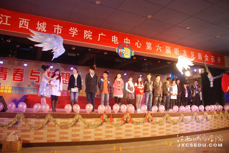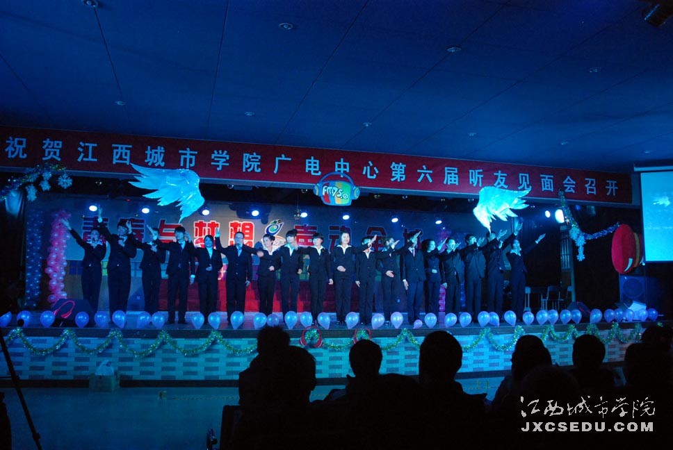 12月9日晚7点,由学院党委宣传部主办、广电中心承办的江西城市职业学院广电中心第六届听友见面会“青春与梦想 声动全城”在活动中心一楼演播大厅华丽上演。常务副校长李存益,副校长黄珍珍、周运浩、吴信守,校长助理唐丽莉、张敏、章斌、刘三根、郎小云等校领导观看了晚会;江西教育电视台新闻中心主任卢卫平,江西MYFM96.9广播电台市场部经理樱子及来自南昌大学、江西师范大学、江西财经大学、华东交通大学、南昌航空大学、江西农业大学、江西中医学院、南昌工程学院、江西蓝天学院、南昌理工学院、江西服装学院等15所兄弟院校的广播站同仁也应邀观看了晚会。