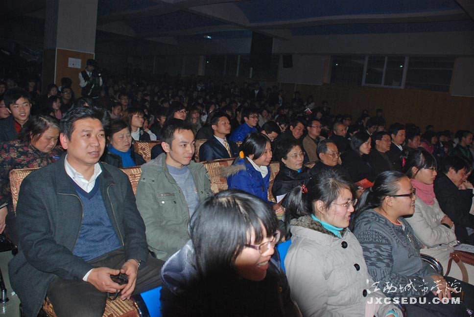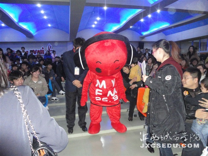 当晚活动中心演播大厅现场座无虚席,过道上挤满了前来观看的学生。江西MYFM96.9广播电台带来的特色吉祥物在晚会开场前与观众进行零距离的接触,可爱活泼的卡通吉祥物即刻便带动了全场热烈的气氛。广电中心成员们动感出场,拉开了整个晚会的帷幕。开场舞《载歌载舞》舞动的裙摆,飘扬的活力,天籁般的声音,即刻感染了在场的观众;相声《我为广电做贡献》妙语连珠,爆料网络流行语,令人捧腹;朗诵《我自豪,我是广电人》声声溢于言表,阐释着作为一名广电人的那份骄傲和自豪;小品《看电视》汇聚时下网络、电视、电影最红的现实风貌,将草根文化的幽默、搞笑发挥的淋漓尽致,惹得在场观众笑声连连,掌声雷动;独具民俗风情的傣族舞蹈《红是红啊绿是绿》舞姿柔美婀娜,舞出了青春的绚烂,舞出了广电人的精彩;新闻中心选送的健美操表演动感激情,将现场的气氛瞬时推向高潮;主播们精彩纷呈的走秀亮相,走出演播室,展示自己的风采。晚会中间的互动环节,更是带动了观众的热情。常务副校长李存益被邀请至台前,为本场晚会抽出了幸运的特等奖和一等奖。主持人请上来自各兄弟院校的嘉宾代表,采取入场券抽奖和联系电话滚动抽奖的方式选出幸运观众,并送了精心准备的幸运奖品。