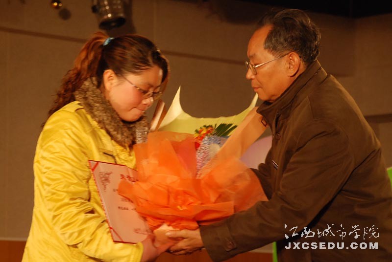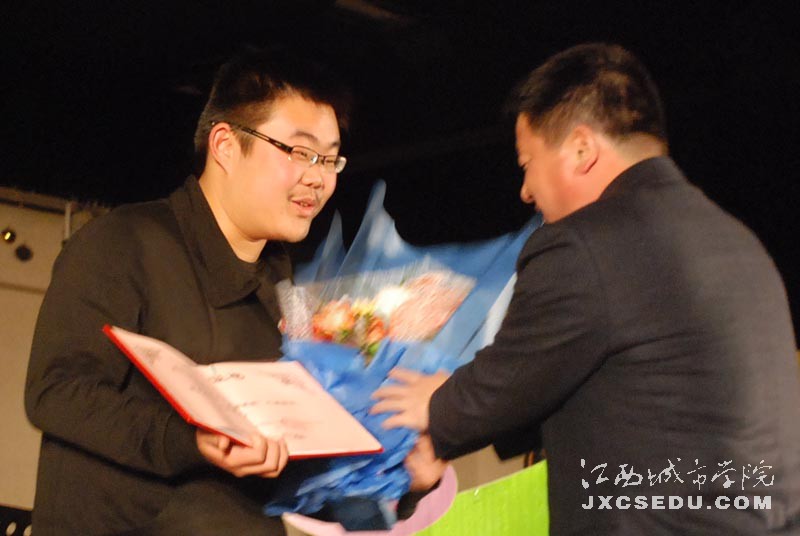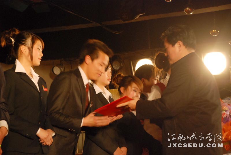 常务副校长李存益为黎振宇颁奖,09旅游管理班长代黎振宇领奖