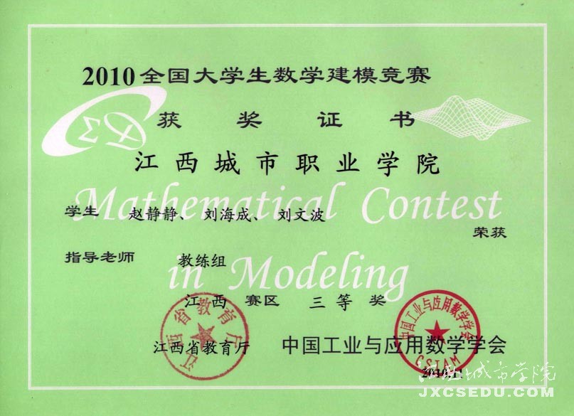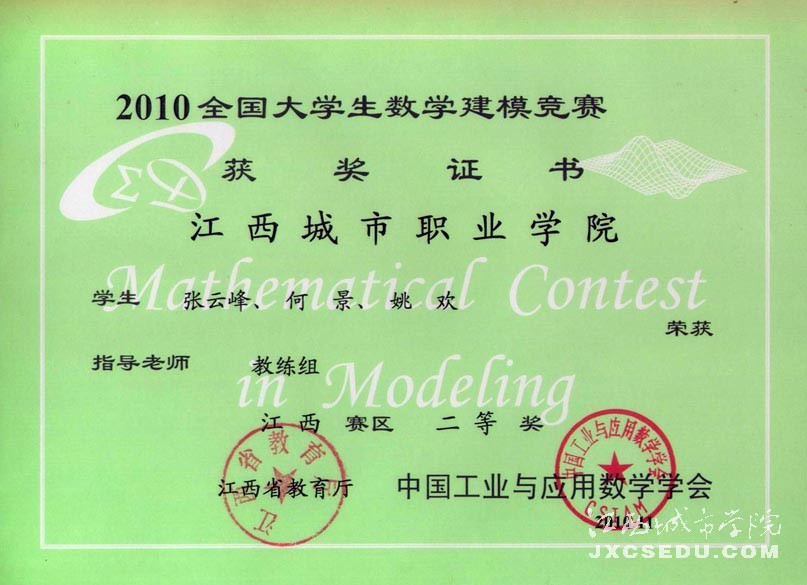 日前,2010年全国大学生数学建模竞赛成绩公布,必赢官网荣获江西赛区二等奖一项,三等奖一项,在全省兄弟院校中居前列。