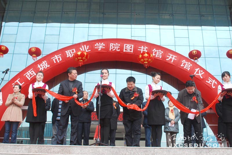 在欢快的音乐声和师生们的掌声中,董事长黄玉林宣布:江西城市职业学院星城校区图书馆开馆!