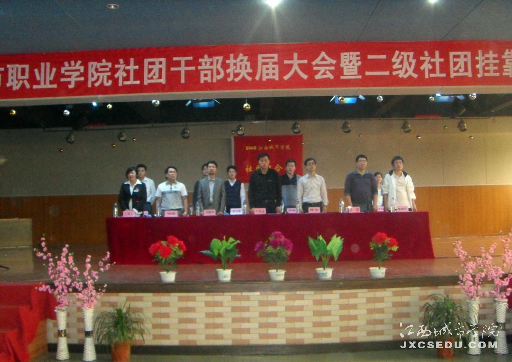 5月4日下午,校团委在活动中心一楼演播大厅召开社团干部换届大会暨二级社团、挂靠社团交接仪式。莅临这次大会的领导及嘉宾有校团委卞秀运书记、学工处副处长李军、就业指导服务中心陈华主任、网络中心刘保平副主任、图书馆徐帅老师、体育教研室殷南炎老师、各学院团总支书记、校心理咨询室曾海虹老师、社团指导老师廖振龙老师。社联、社团主要负责人以及校学生会、校青年志愿者协会、各分院学生会学生干部代表也参加此次大会。