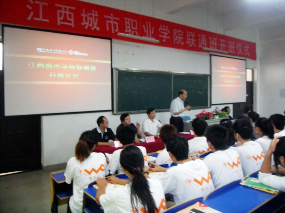 在开班仪式上,中国联通江西分公司副总经理许明新表示,江西城市职业学院在为服务城市化建设培养复合型、应用型、创造型人才,在信息化办学领域走在行业前列,在这里他们看到了培养联通未来人才的新路径。在谈及本次办班的意义时,他说,中国联通一直致力于成为“信息生活的创新服务领导者”,以“3G领先和一体化创新战略”,践行社会责任,服务信息生活。在联通3G携得天独厚之势成为中国移动互联网时代第一品牌时,我们也需要组建一支与之相适应的客户服务队伍。因为,一流的硬件设施要有一流的软件服务,方能体现其完美价值。
