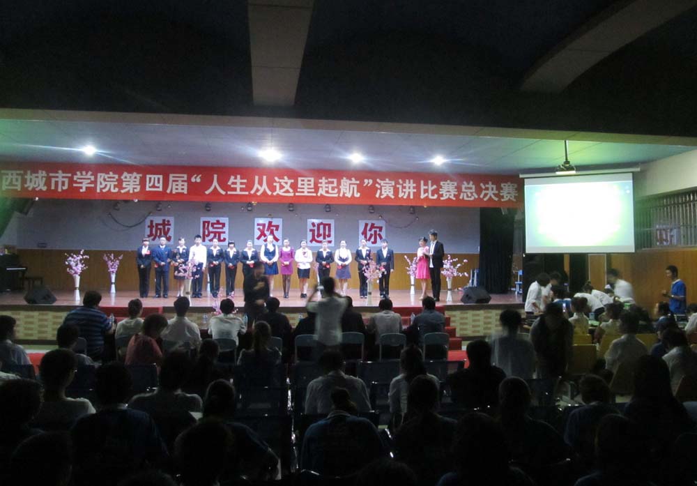 为丰富我城院学子的课余文化生活,开拓视野,展现新生风采。由团委组织校学生会承办的第四届“人生从这里起航”演讲比赛总决赛,于2011年9月27日19时,在活动中心一楼演播大厅隆重举行。校长助理兼建筑工程学院党总支书记章斌、机电工程学院党总支书记张敏、现代管理学院党总支书记卢健、梅岭艺术学院音乐系党总支书记濑良淦、人文信息学院党总支书记戴红永、国际商务学院党总支书记马妮、梅岭设计艺术学院党总支书记聂立新、学工处副处长兼就业办副主任张作霖、艺术团团长范敏担任此次决赛的评委。