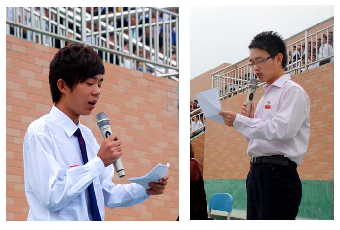 老生代表陈恒,新生代表王杰在开学典礼上发言