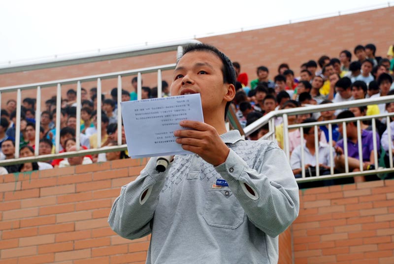 教师代表曹金保在开学典礼上发言