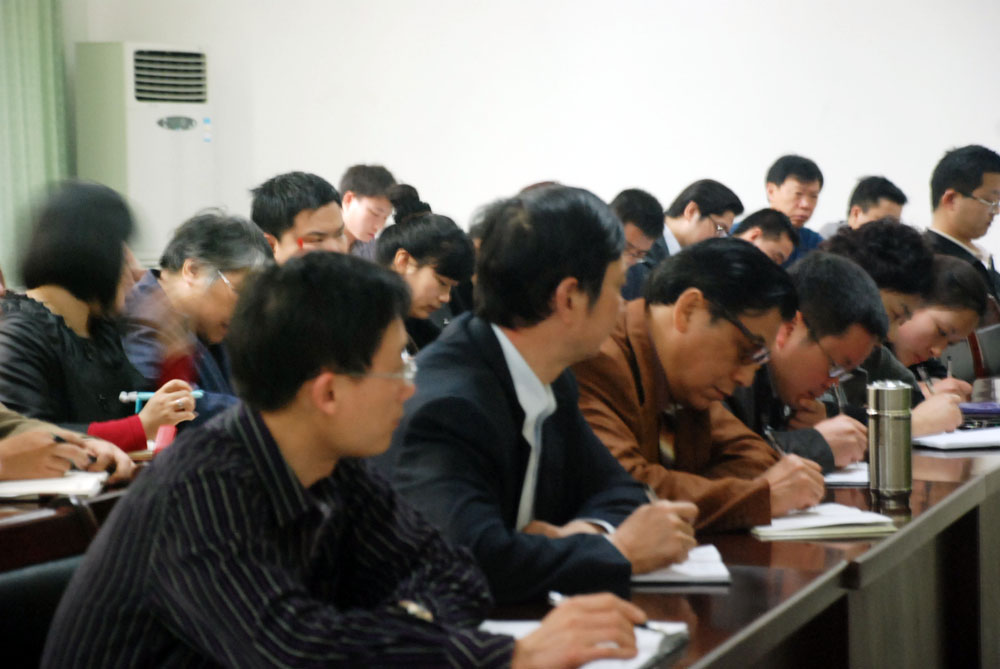 与会人员认真学习人民日报评论员文章