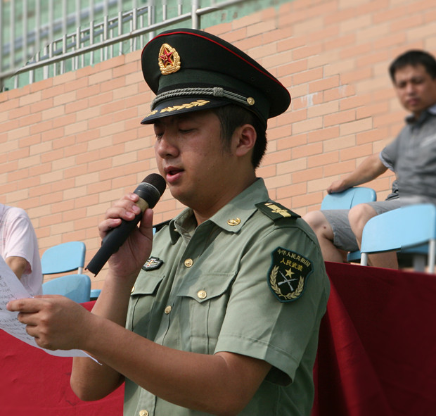 四连连长赵璇代表全体教官,国际商务学院新生李梦代表全体参训学生分别发言,表达出教官和学生们勇于迎接挑战,圆满完成军训任务的决心和勇气。